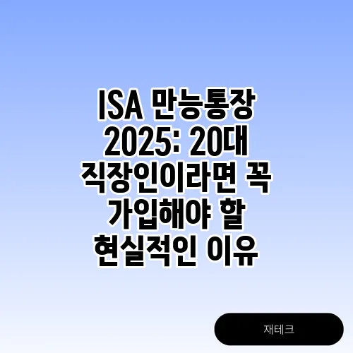 ISA 만능통장 2025: 20대 직장인이라면 꼭 가입해야 할 현실적인 이유 2025년 06월 29일 by 재테크의 모든것 안내해 드립니다. 목차 ▼ Home 카테고리 없음 ISA 만능통장 2025: 20대 직장인이라면 꼭 가입해야 할 현실적인 이유 반응형 ISA 만능통장 2025: 20대 직장인이라면 꼭 가입해야 할 현실적인 이유메인 콘텐츠 생성 실패 공유하기 게시글 관리 재테크의 모든것 분류 전체보기